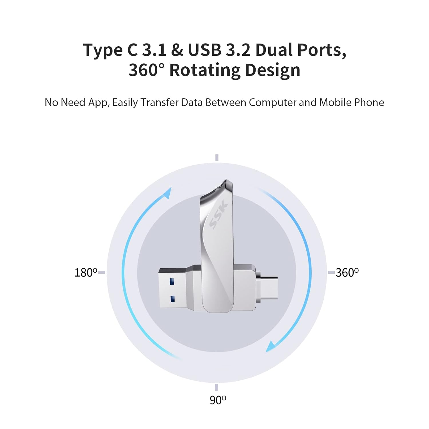 360°Rotating Design: The usbc flash drive with the innovative 360° swivel design to protect connectors, and 90 °stuck point design avoids the drive rotates randomly. Convenient keyring hole design, you can hang the usb memory stick on a key chain